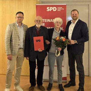 Ein besonderer Höhepunkt der jüngsten Zusammenkunft war die Ehrung von Bernhard Ites für 55 Jahre Mitgliedschaft in der SPD. Die Auszeichnung nahm Matthias Arends vor. Bernhard Ites hat die SPD in der Krummhörn über Jahrzehnte hinweg mit großem persönlichem Einsatz begleitet und in dieser Zeit zahlreiche politische Entwicklungen mitgetragen.